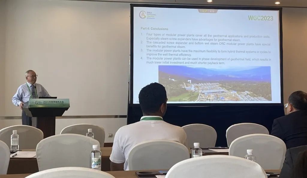 9月16日,公司總經理、開山地熱井口模塊發電技術創始人湯炎博士參加2023年北京世界地熱大會(WGC),并受國際地熱協會(IGA)首席執行官Marit Brommer女士邀請,做了題為《使用地熱模塊電站提高地熱井產量》(Improving Well Power Output Using Modular Geothermal Power Plants)的專題報告。