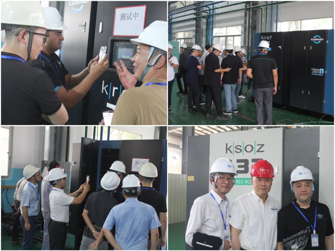 經銷商實地察看了兩臺分別是75kW和132kW的無油螺桿空壓機,所有參加會議的專業人士都對機組運行時超低的噪聲贊不絕口,贊揚機組精湛的制作工藝讓機器看起來就像“工藝品”,馬來西亞經銷商告訴同行,他銷售的160kW無油機業主十分滿意,無油機打開市場是指日可待的。